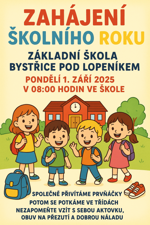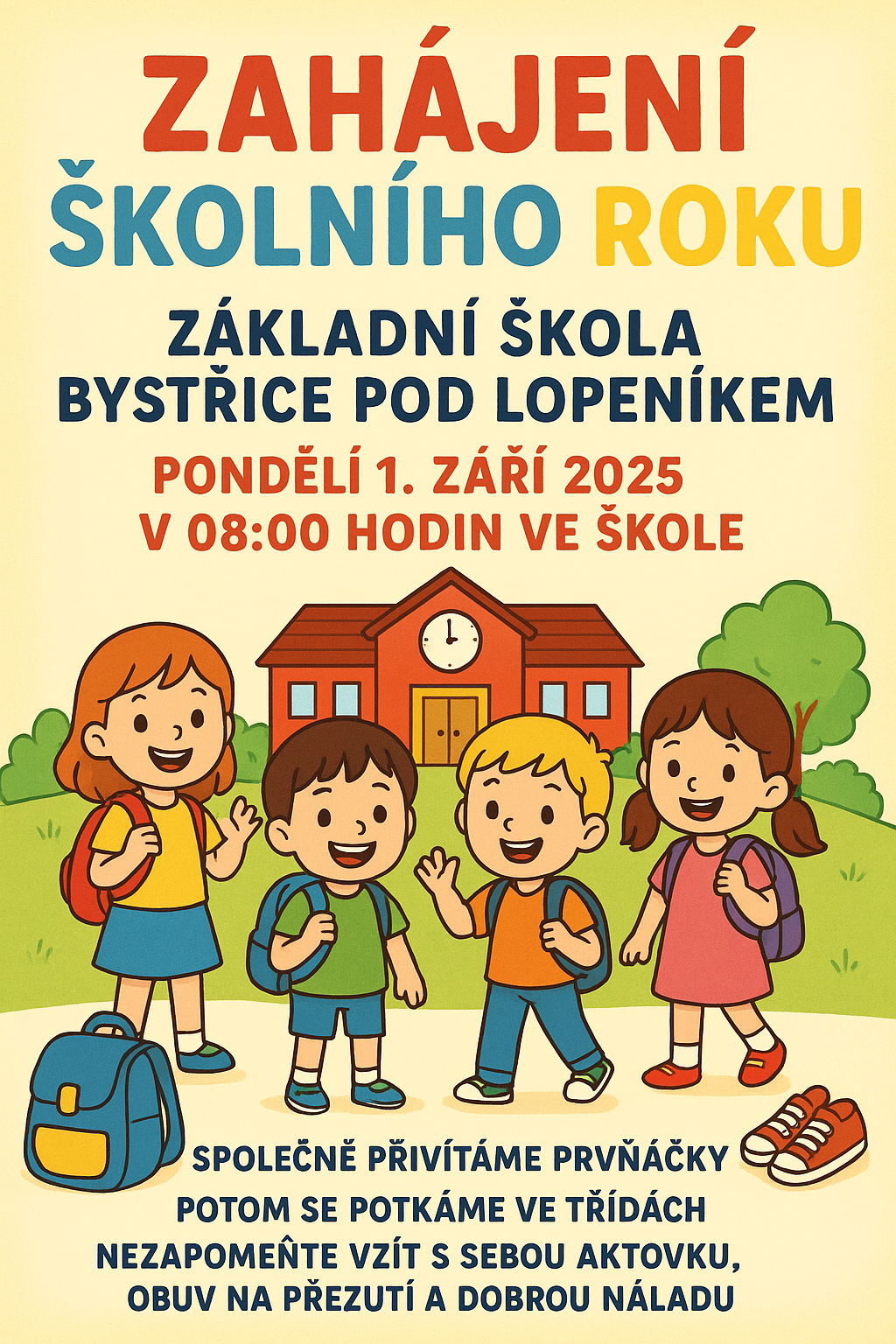 27.8.2025 Haló, haló, škola volá... Milí žáci, vážení rodiče, milí přátelé, zveme Vás na zahájení nového školního roku